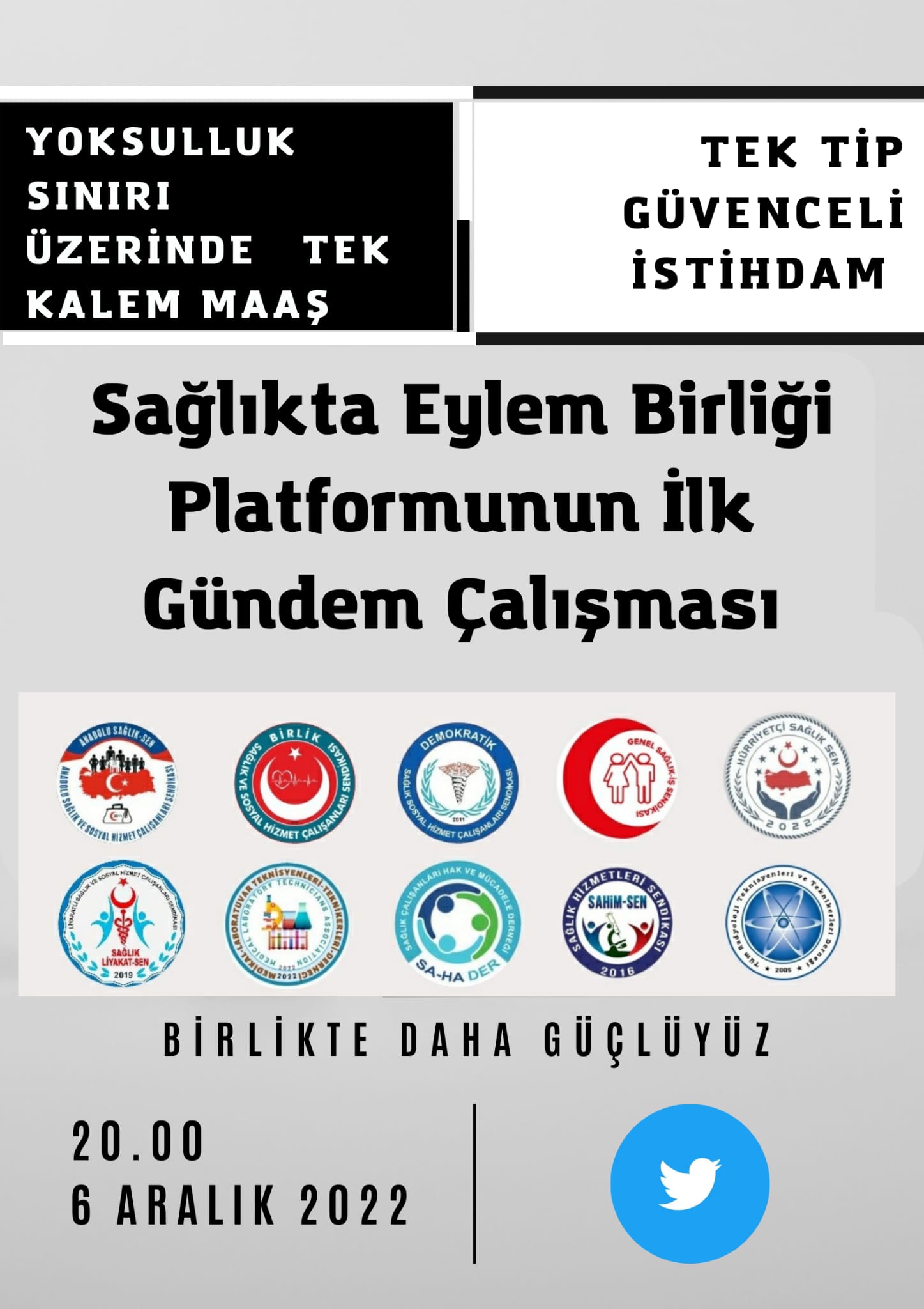 Salı günü saat 20.00'de Sağlıkta Eylem Birliği Platformu olarak temel problemlerimizin çözümü için gündem çalışması yapılacaktır. Tüm sağlık meslek çalışanlarını gündem çalışmasına davet ediyoruz.