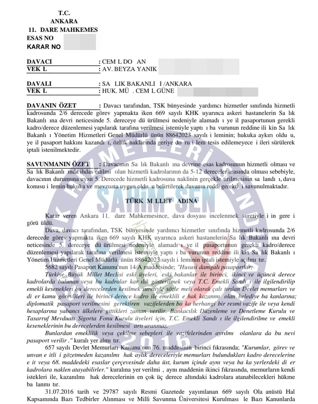 SAHİM-SEN HUKUK SERVİSİNDEN BİR KAZANIM DAHA!